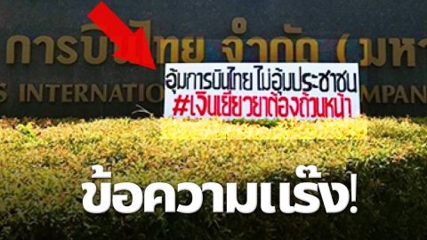 พบป้ายโผล่! หน้าการบินไทย หลังรัฐบาล ไฟเขียวฟื้นฟูฯ ข้อความแรง