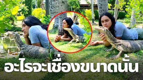 แน็ก ชาลี นอนเกาคางเล่นกับ เจ้าบุญช่วย ท่าทางสนิทสนมกันมาก