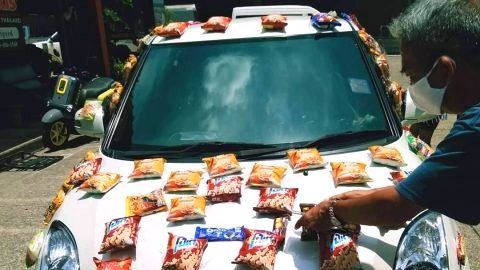 ตำรวจชัยนาท ใจบุญ เปลี่ยนรถสายตรวจเป็นพุ่มพวงแจกผักชาวบ้านฟรี