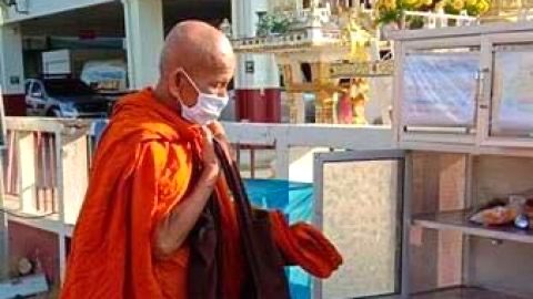 จัดไปทั้งย่าม หลวงพ่อนำอาหารจากการบิณฑบาตมาใส่ตู้ปันสุข “มาเอาไปกินนะโยม”