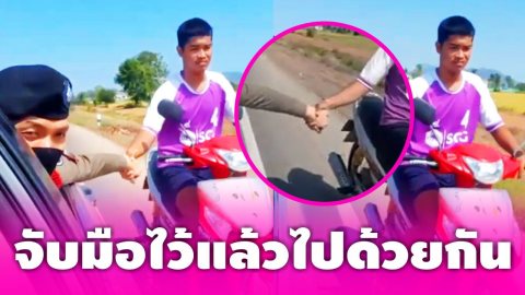 ตำรวจท่องเที่ยวกาญจนบุรี จับมือช่วยน้อง หลังมอเตอร์ไซค์เสียอยู่ริมทาง (คลิป)