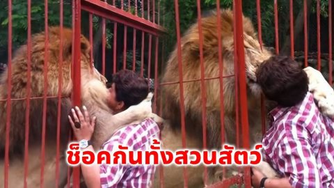 หญิงสาวเดินไปเกาะกรงสิงโต เจอมันกระโจนใส่อย่างแรง นึกว่าถูกตะปบ ก่อนเดินเข้าไปดูใกล้ๆ
