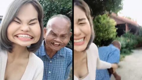 หลานสาวหลอกคุณตามาถ่ายเซลฟี่ พอเห็นหน้าคุณตาเสียการควบคุมทันที