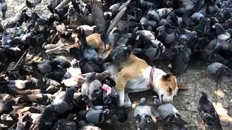 เจ้าตูบขี้เซาหลับลึกสุดๆ นกรุมทั้งฝูงยังทำอะไรมันไม่ได้