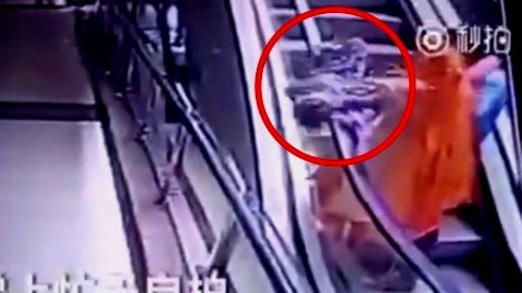 คลิปบีบหัวใจ! อุทาหรณ์แม่อุ้มลูกขึ้นบันไดเลื่อนเผลอทำลูกหลุดมือตกลงไปชั้นล่าง