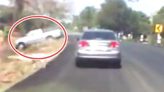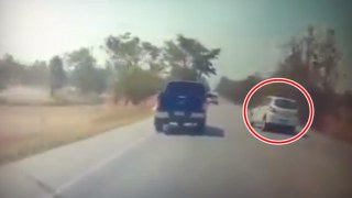 คลิปเตือนภัย! เจอ สุนัขวิ่งตัดหน้า รถกระบะเสียหลักพุ่งลงข้างทาง