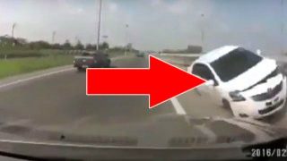 (คลิป) โตโยต้า วีออส สายปาดไม่เปิดไฟเลี้ยว พลาดถูกชนเสยที่กั้นกระเด็นพังยับ