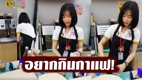 เปิดคลิป “พนักงานชงกาแฟเซเว่น” ผมสั้นสุดน่ารัก