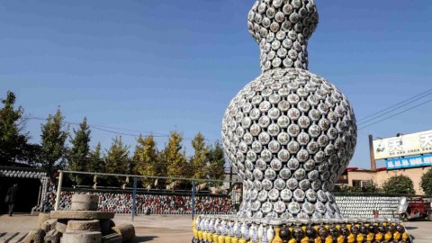 งดงาม! เปลี่ยนขยะเป็นงานศิลป์! “หนึ่งกุณโฑยักษ์” จาก “พันขวดเหล้าจีน”