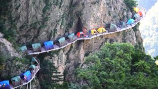 เสียววาบ!! นักท่องเที่ยวจีนเผยที่พักแรมแบบใหม่ กางเต๊นท์นอนริมหน้าผาสุดเร้าใจ