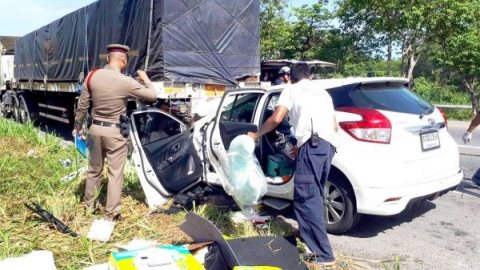 เกิดเหตุรถยนต์ชนท้ายรถพ่วงเทรลเลอร์มีผู้บาดเจ็บ+เสียชีวิตบนถนนเพชรเกษมขาล่องใต้