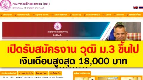 เฮทั้งประเทศ! “กรมกิจการเด็กและเยาวชน” รับสมัครงาน ด่วนๆ วุฒิ ม.3 ขึ้นไป เงินเดือนสูงสุด 18,000