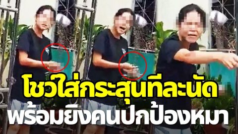 สาวแก่โชว์ใส่กระสุนทีละนัด เจ้าของถือปืนขู่ ปกป้องหมาตัวเองทั้งที่ไปไล่กัดคนอื่น