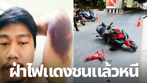 เด็ก 16 ขับรถซิ่ง ฝ่าไฟแดงสวนเลนชนแล้วหนี มอไซค์กระเด็นระนาว บาดเจ็บ (ชมคลิป)