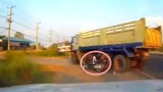 คลิปอุบัติเหตุ! นาที รถบรรทุกสิบล้อทับ Vs มอไซค์ แล้วหนีหน้าปั๊ม ปตท.อำเภอเกษตรวิสัย ดับ 2