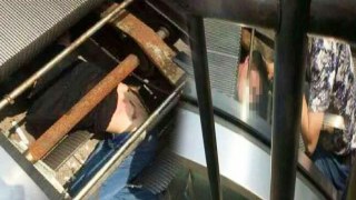 เสียวสยองกลางห้าง ช่างหนุ่มจีนถูกบันไดเลื่อนดูดเข้าไปทั้งตัว - อาการสาหัส
