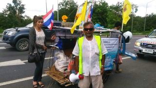 ลุง พร้อมด้วยครอบครัว เดินทางด้วยรถเข็นจากพัทลุงไปกรุงเทพฯเพื่อถวายพระพรให้พระเจ้าอยู่หัวทรงหายจากพระประชวร