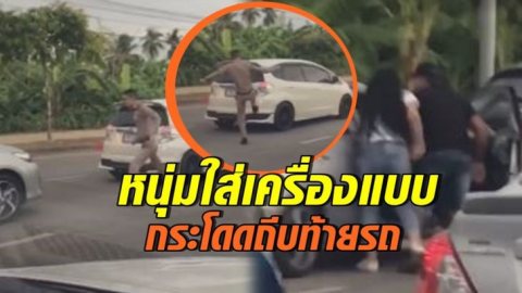 เรื่องเดือดๆ เช้านี้..หนุ่มเครื่องแบบหัวร้อน กระโดดถีบเก๋ง