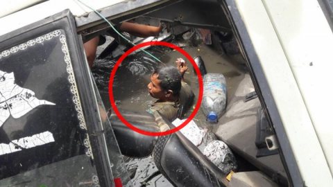 ข่าวด่วน! อุบัติเหตุรถบรรทุกเฉี่ยวชนเสาไฟฟ้ามีผู้บาดเจ็บติดค้างในรถในคลองน้ำ