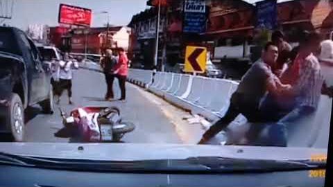 เก๋งแซง10ล้อไม่พ้นชนคนปั่นจักรยานกระเด็นดับไปบนหลังคารถดับสยอง