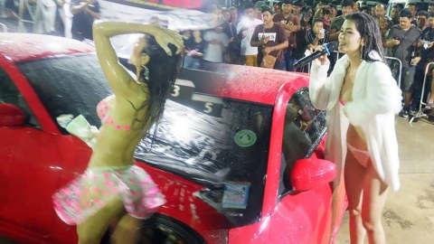 ล้างรถกัน!! “น้องแนท” ล้างรถอีกแล้ว สวมบิกินีตัวจิ๋ว ละเลงโฟมเปียกน้ำโชว์xวิว กลางงานแข่งรถ