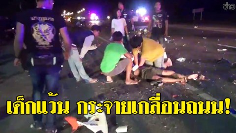 ดราม่าเด็กแว้น!! กระจายเกลื่อนถนน! ขาแว้นซิ่งรถจยย. นับสิบคันก่อนพุ่งชนกระบะเลี้ยวเข้าปั้ม 5 คันรวด เจ็บ 8 ราย