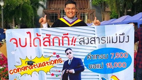 แรงโดนใจ !! เมื่อพี่สาวทำป้ายยินดีน้องชายรับปริญญา กับข้อความโดนใจที่เรียนตลอด 4 ปีเต็ม..