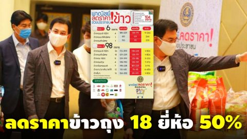 ลดราคาข้าวถุง 18 ยี่ห้อ *สูงสุด 50 % วางขาย 5 ห้างชื่อดัง