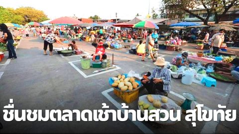 ชื่นชม! พ่อค้าแม่ค้าขายของแบบ Social Distancing ที่ตลาดเช้าบ้านสวน สุโขทัย