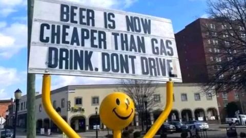 เกิดป้ายเตือนในแคนาดา "ตอนนี้น้ำมันแพงกว่าเบียร์แล้วนะ ดื่มแล้วงดขับเถอะ"
