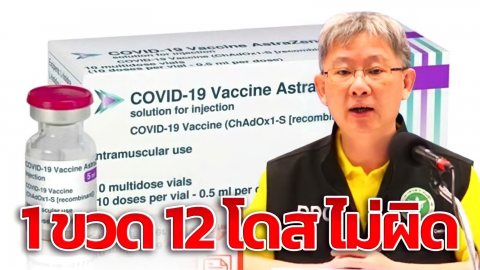 อธิบดีกรมฯ ยืนยัน ไม่ต้องกังวล วัคซีนแอสตร้าเซนเนก้า 1 ขวด ฉีดได้ 12 โดส ทำได้ไม่ผิด
