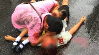 พ่อแม่ขี่รถส่งลูกไปเรียน ฝนตกลื่นล้ม เก๋งทับซ้ำดับ 2 ศพ
