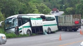 สิบล้อช่วยชีวิต! รถเมล์ไต่ดอยเจอฝน ชนก่อนร่วงเหว เจ็บ 3 อีก 40 รอด