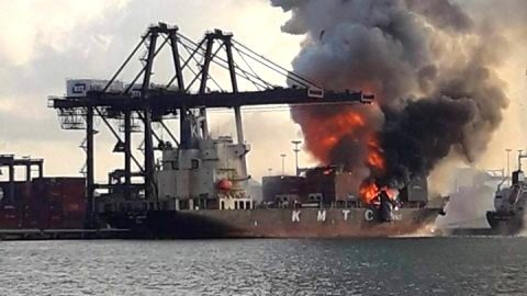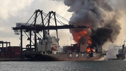 ข่าวด่วน! เกิดเหตุเพลิงไหม้ตู้คอนเทนเนอร์ ท่าเรือแหลมฉบัง
