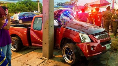 กระบะเสียหลักชนเสาไฟฟ้า จ.ปทุมธานี
