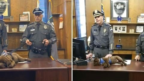 ว่าที่สุนัขตำรวจตื่นขึ้นมาเตรียมตัวแต่เช้าตรู่ จนเผลอหลับในพิธีสาบานตนของตัวเอง