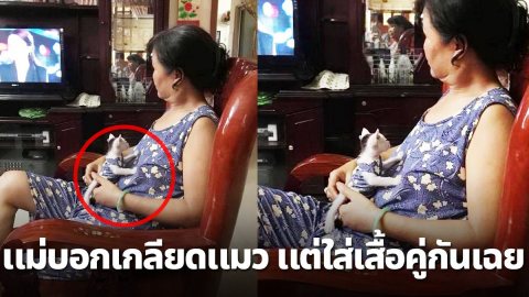 คุณแม่บอกว่าเกลียดแมวแต่ใส่เสื้อคู่ด้วยกันเฉย ขนาดลูกแท้ๆยังไม่เคยใส่คู่แบบนี้เลย