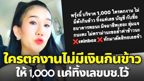ทั้งสวยทั้งใจดี สาวโพสต์ให้เงิน ใครตกงานไม่มีตังซื้อข้าวกิน