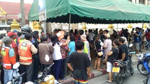 คนเนืองแน่น! บริเวณหน้าวัดดอนเมือง มีการแจกข้าวสารอาหารแห้ง มีคนจำนวนมาก การจราจรติดขัด