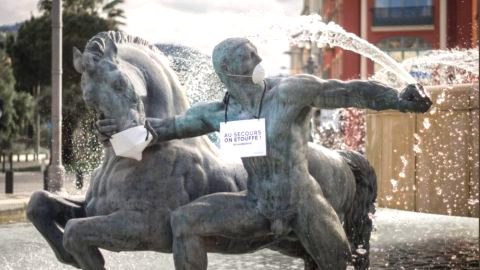 จัดไป!! ชาวฝรั่งเศสสวมหน้ากากอนามัยให้รูปปั้น เคลื่อนไหวเชิงสัญลักษณ์เร่งรัฐบาลแก้ปัญหามลพิษ