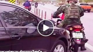 เก๋งดำมาจากทางคู่ขนาน ดันรถมอไซค์'จะลักไก่เข้าเส้นหลัก (clip)