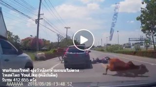 คลิปอุทาหรณ์! จยย.ข้ามแยกไฟยังแดง เก๋งพุ่งชนเต็มๆ
