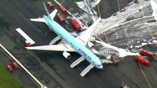 สุดระทึก! บินโดยสารโคเรียน แอร์ ไฟไหม้ปีกซ้าย กำลังทะยานออกจากโตเกียว