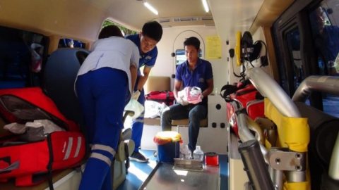 สาวกัมพูชาคลอดลูกบนรถกระบะกระทันหัน ตำรวจทางหลวงและกู้ภัยรีบช่วยเหลือ
