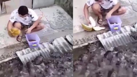 เพิ่งเคยเห็น! เต่ากินทุเรียน