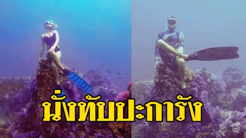 เท่ห์ซินะ!! เมื่อ นนท. ชาวต่างชาติ ขึ้นนั้งบนปะการัง โพสท่างามถ่ายรูปส่งอวดเพื่อน กันสนุกสนาน