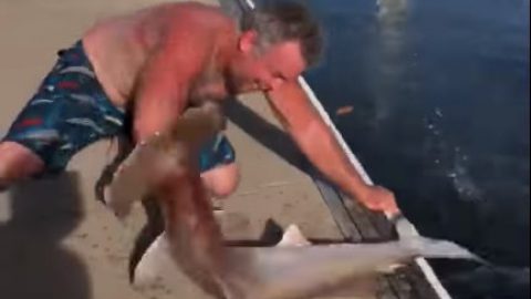 คลิประทึกขวัญ ประมงดึงแขนเจอฉลามหัวค้อนเขมือบ