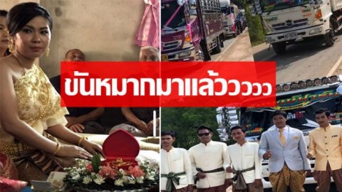 ชาวบ้านฮือฮา! ขบวนแห่ขันหมาก “สิบล้อ” 30 คัน หอบสินสอดขอสาวสงขลา (คลิป)