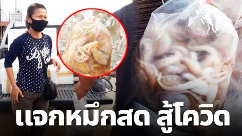สาวใจบุญนำปลาหมึกสด มาแจกฟรี หน้าบิ๊กซีวารินชำราบสู้โควิด