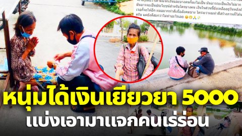 หนุ่มได้รับเงิน 5000 หักค่าใช้จ่ายในบ้าน ก่อนนำไปตระเวนแจกคน